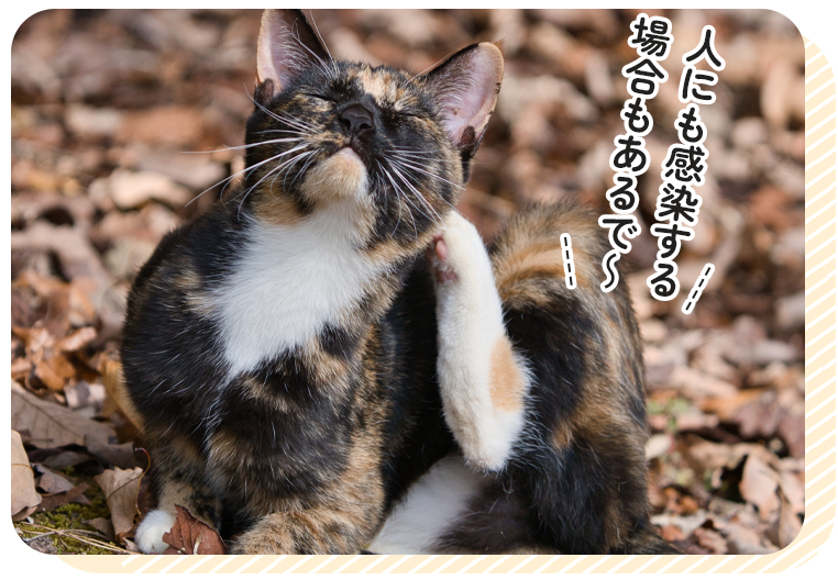 飼い始めの子犬、子猫にみられることがある病気で、特にほかの動物と接する機会が多かった子は、お迎えした時点では無症状でも、生活環境の変化や免疫力の低下によって症状が現れることがあります。